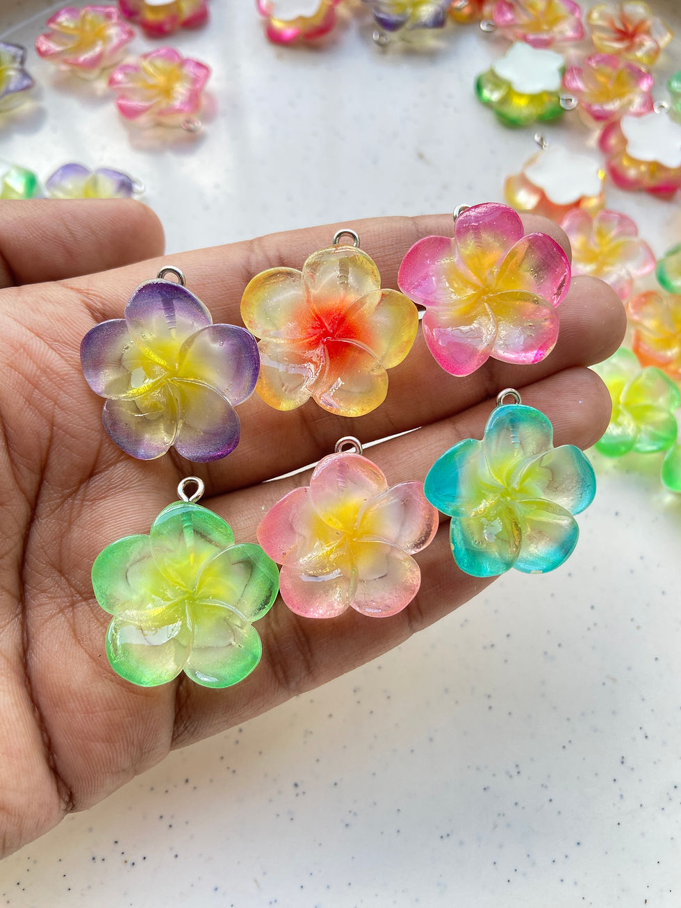 Transparent frangipani flower resin charm