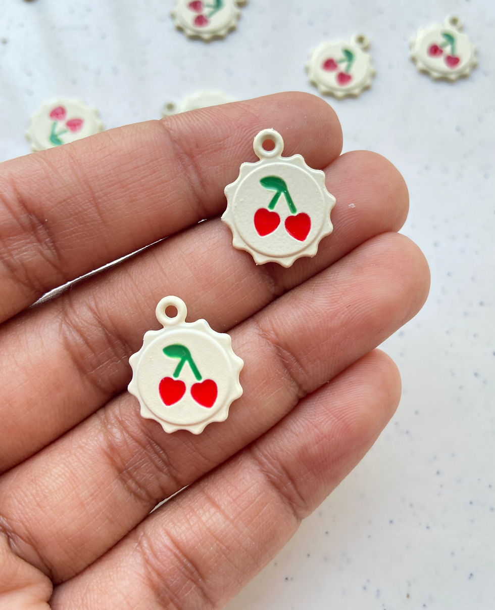 White spray painted wavy circle cherry print charm