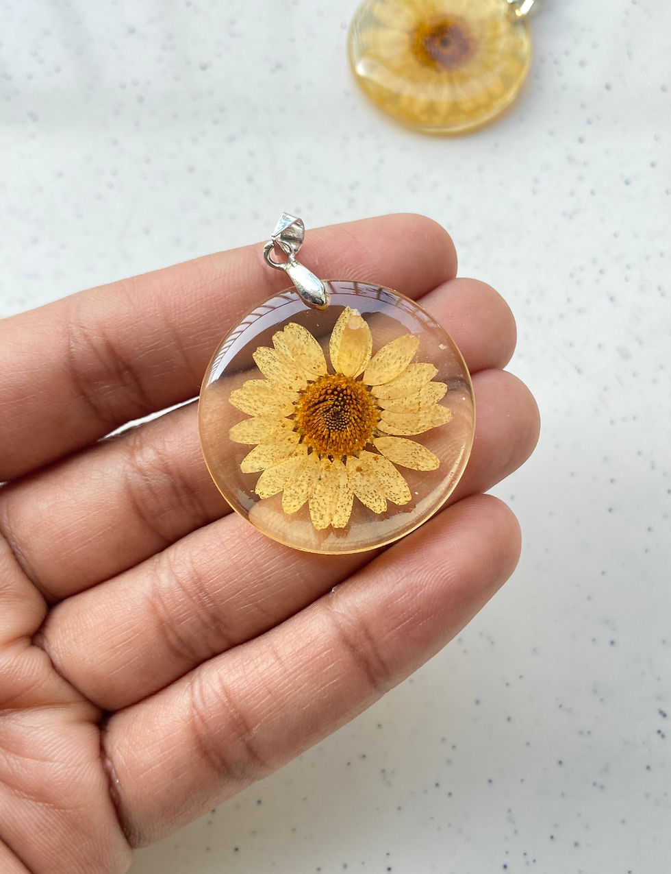Resin dried flower inside pendant/charm